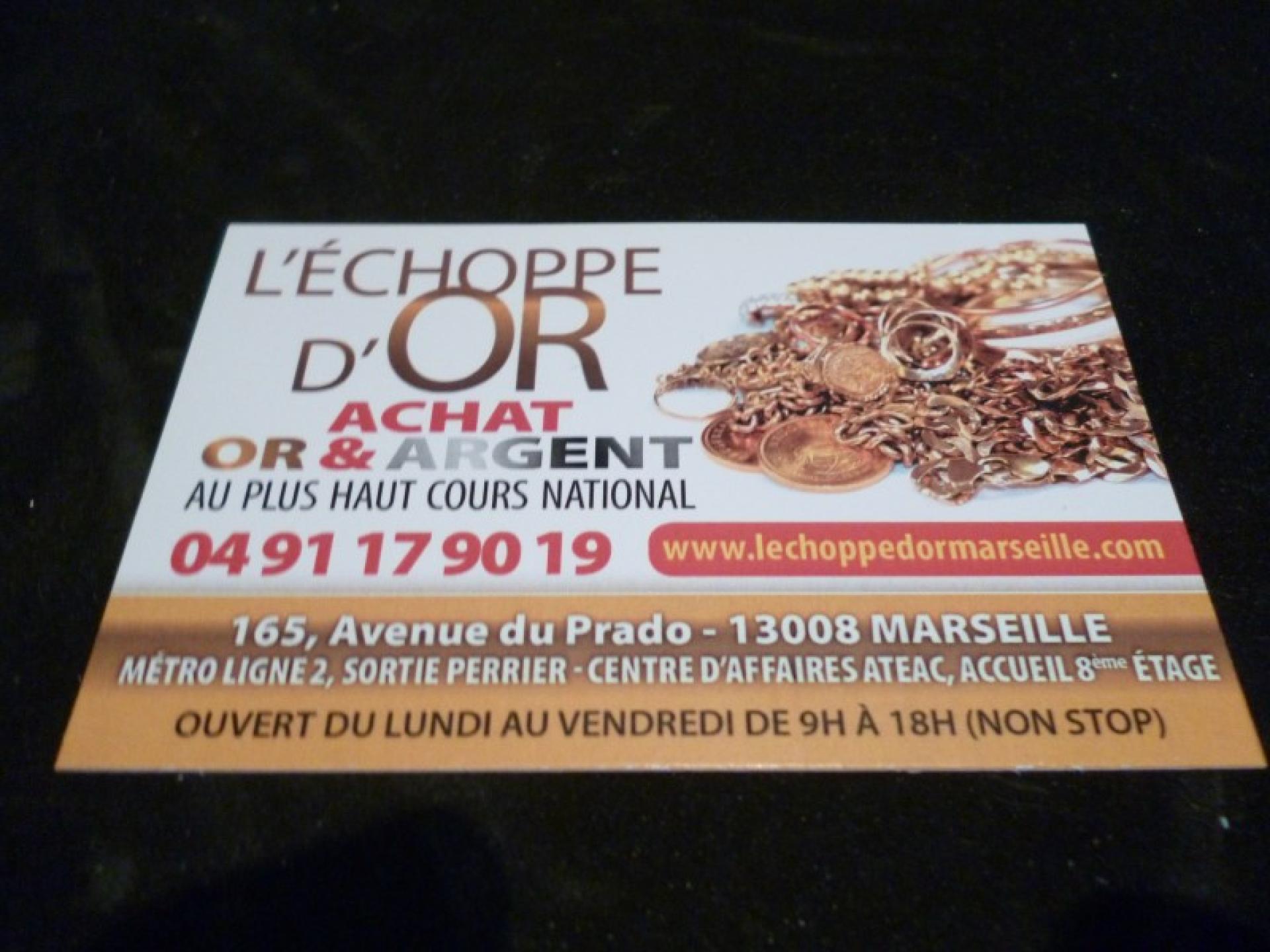 Carte de visite de notre bureau d'achat d'or marseille 165 avenue du prado 13008 Marseille. Accueil 8 ém étage.