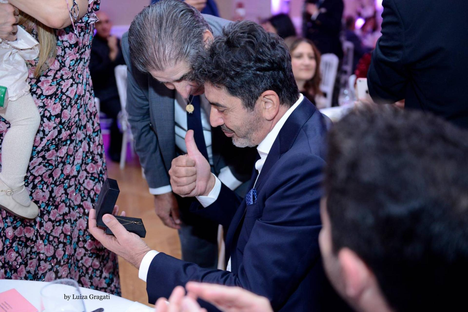 Ces médailles Aznavour sont en forme de CD, en or jaunes 18 carats avec une clef de sol en or blanc ou en argent 925/1000.