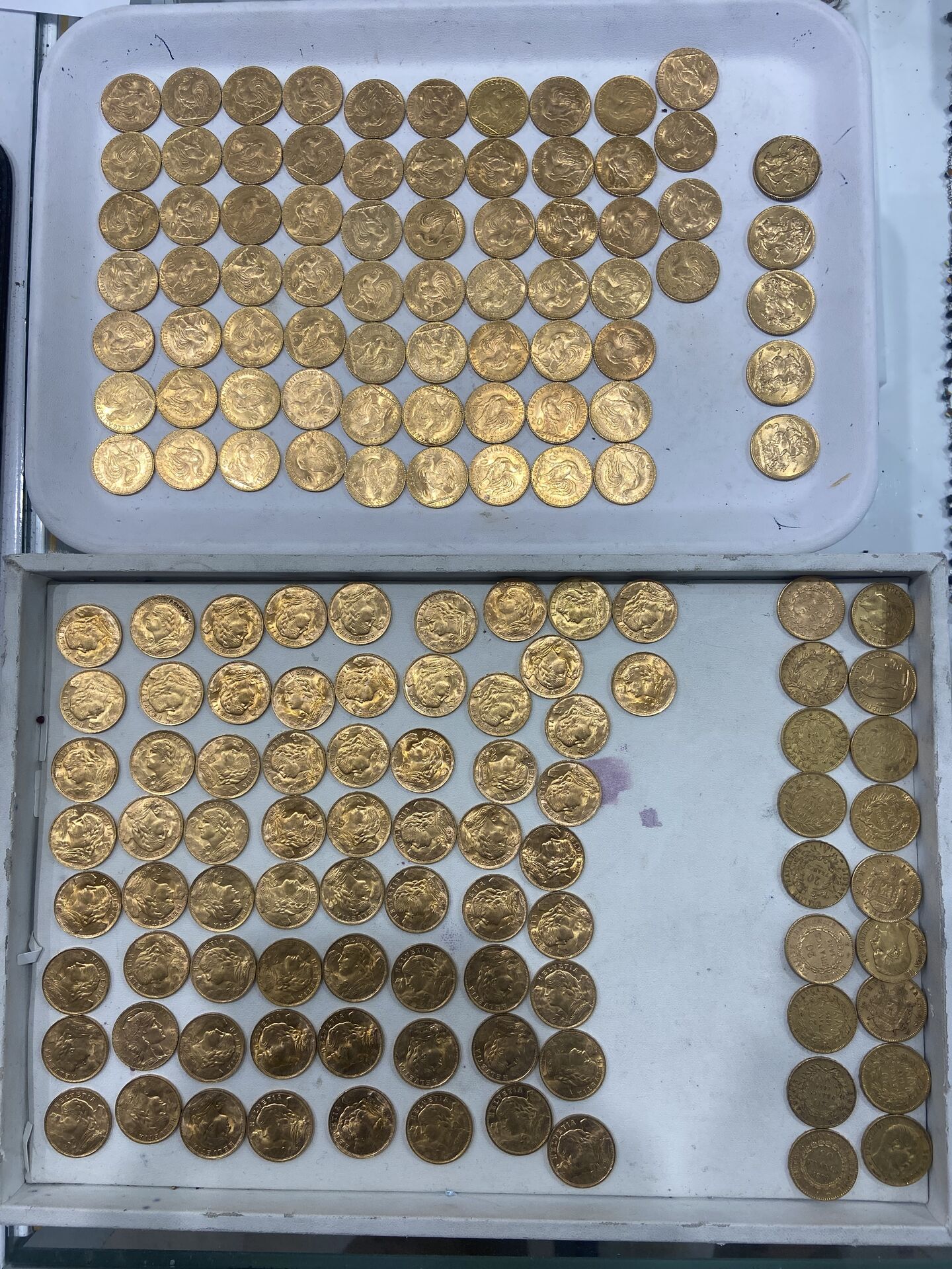 les pièces de 5 francs 10 francs, 50 francs hercule et les 100 francs.
